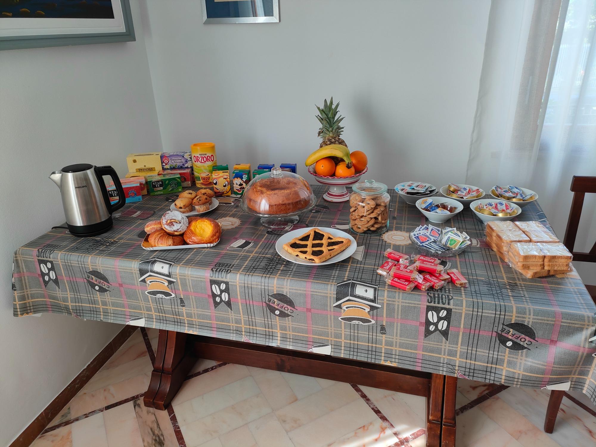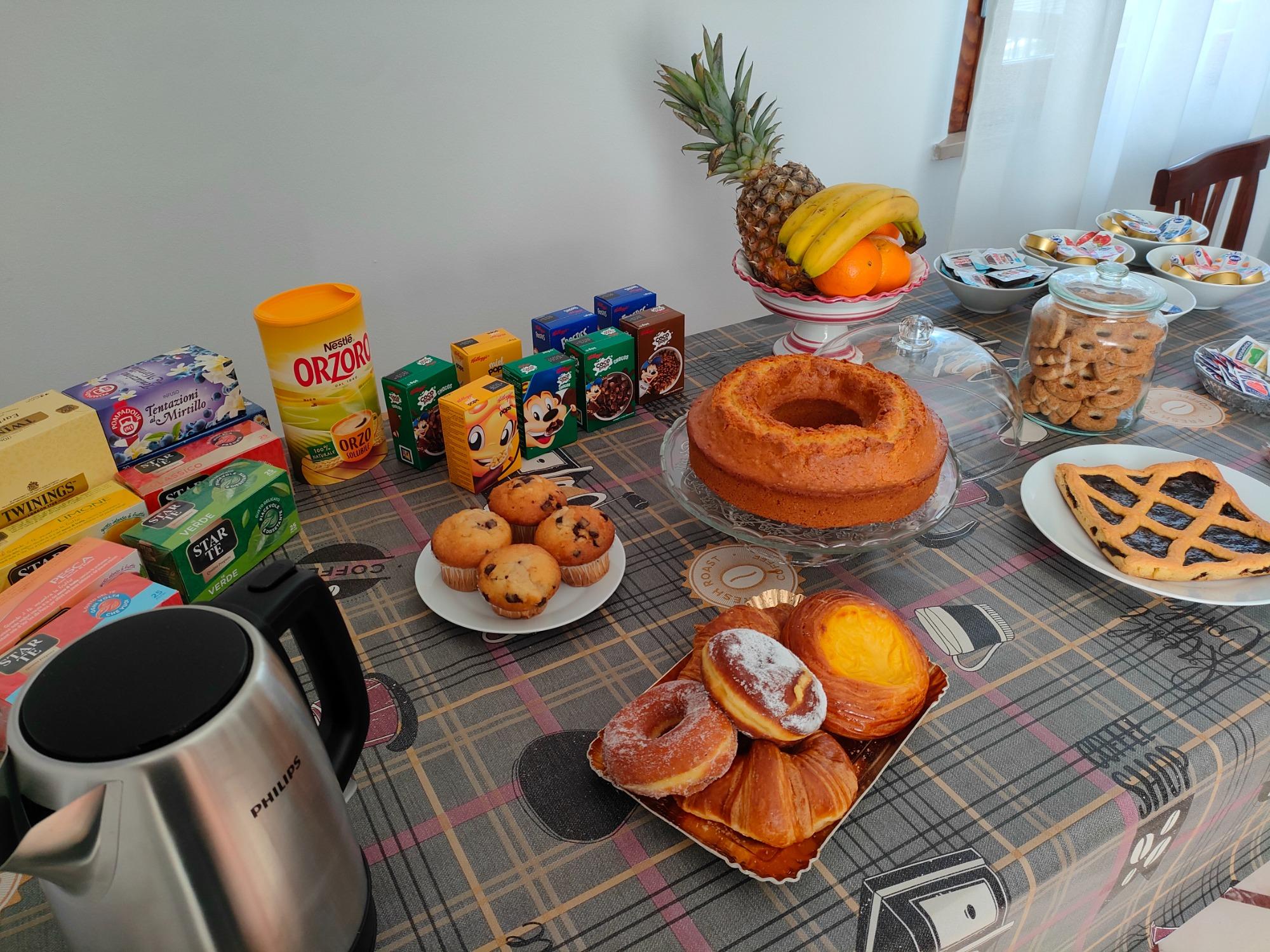 Our breakfast is simple and hearty, with fresh pastries, bread, toast, muffins, cereals, jams, Nutella, homemade cakes and pies, espresso coffee, milk, tea, fruit juice, yogurt, and fresh fruit. Moreover, upon request, variations are possible for special needs, savory breakfast, or allergies and intolerances. You can choose to enjoy it in the breakfast room or on the terrace.